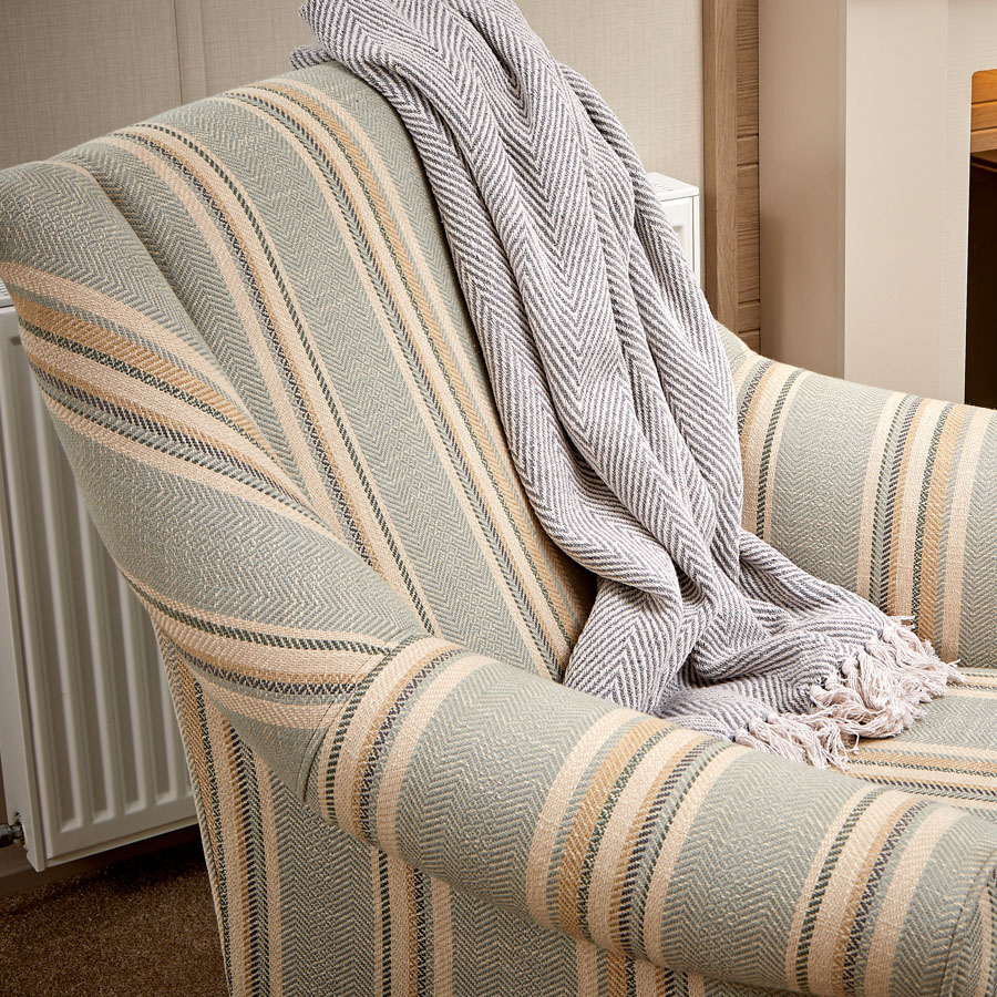 The New England-inspired styling combines a light, calming colour palette with a flame-effect log burner, signature Carnaby cabinetry,