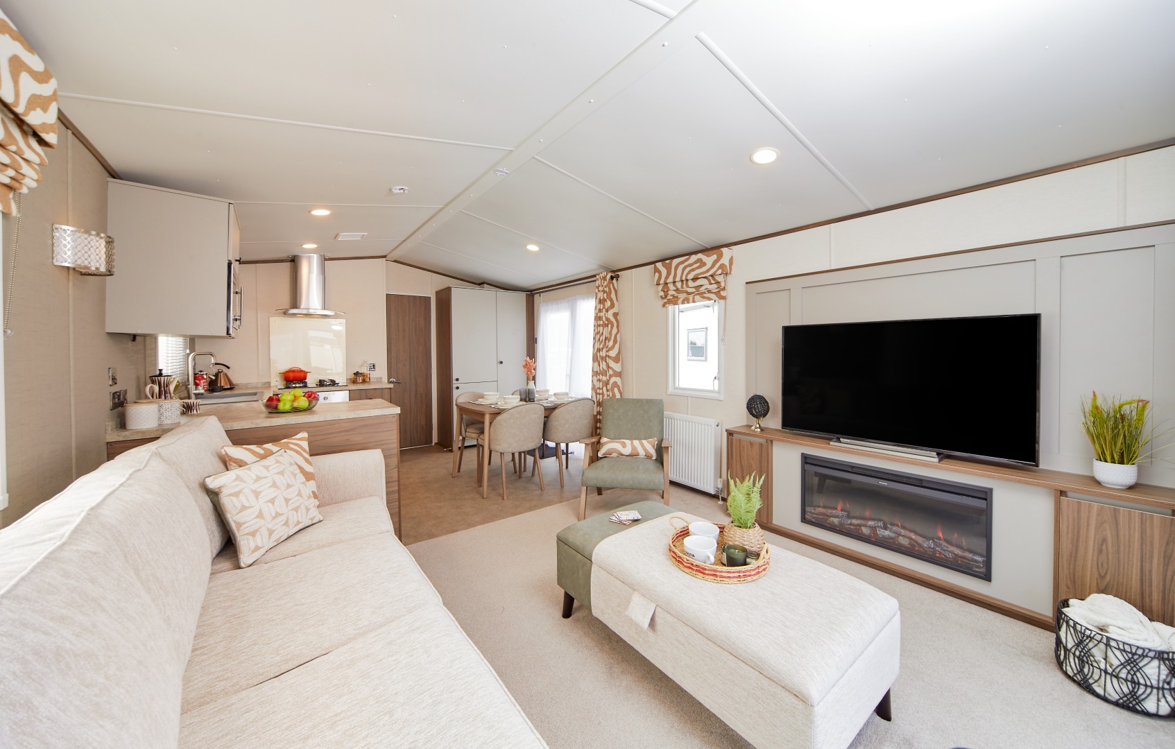 Step inside the brand-new Carrington and discover a holiday home designed for light, space and modern comfort. Panoramic windows and vaulted ceilings create a bright, airy lounge, while the open-plan layout flows effortlessly into a stylish walnut and pebble grey kitchen - a thoughtful new addition to the Carnaby range.